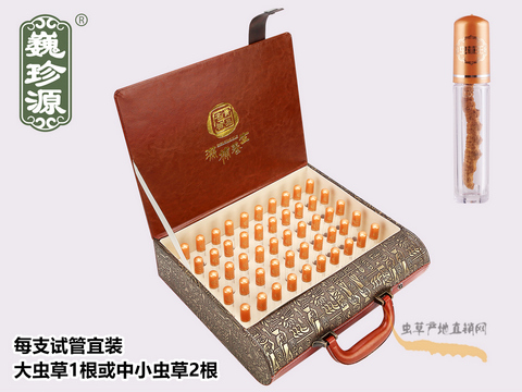 適合規(guī)格:每支管能裝中等與大規(guī)格冬蟲(chóng)夏草一根,具體為:1.6~3條/克,能裝小規(guī)格冬蟲(chóng)夏草兩根,具體為:3.5~5條/克。